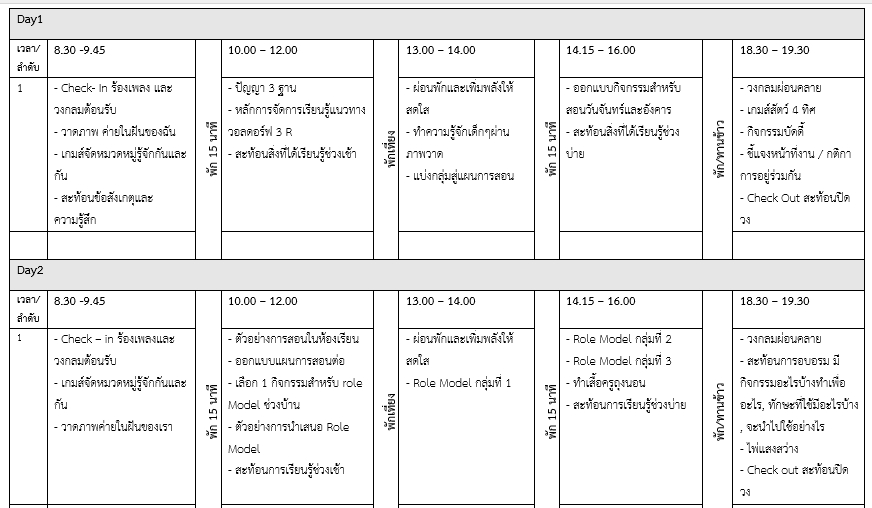 1. สนับสนุนการเตรียมความพร้อมก่อนสอน Pre- Camp trainining 2 วัน